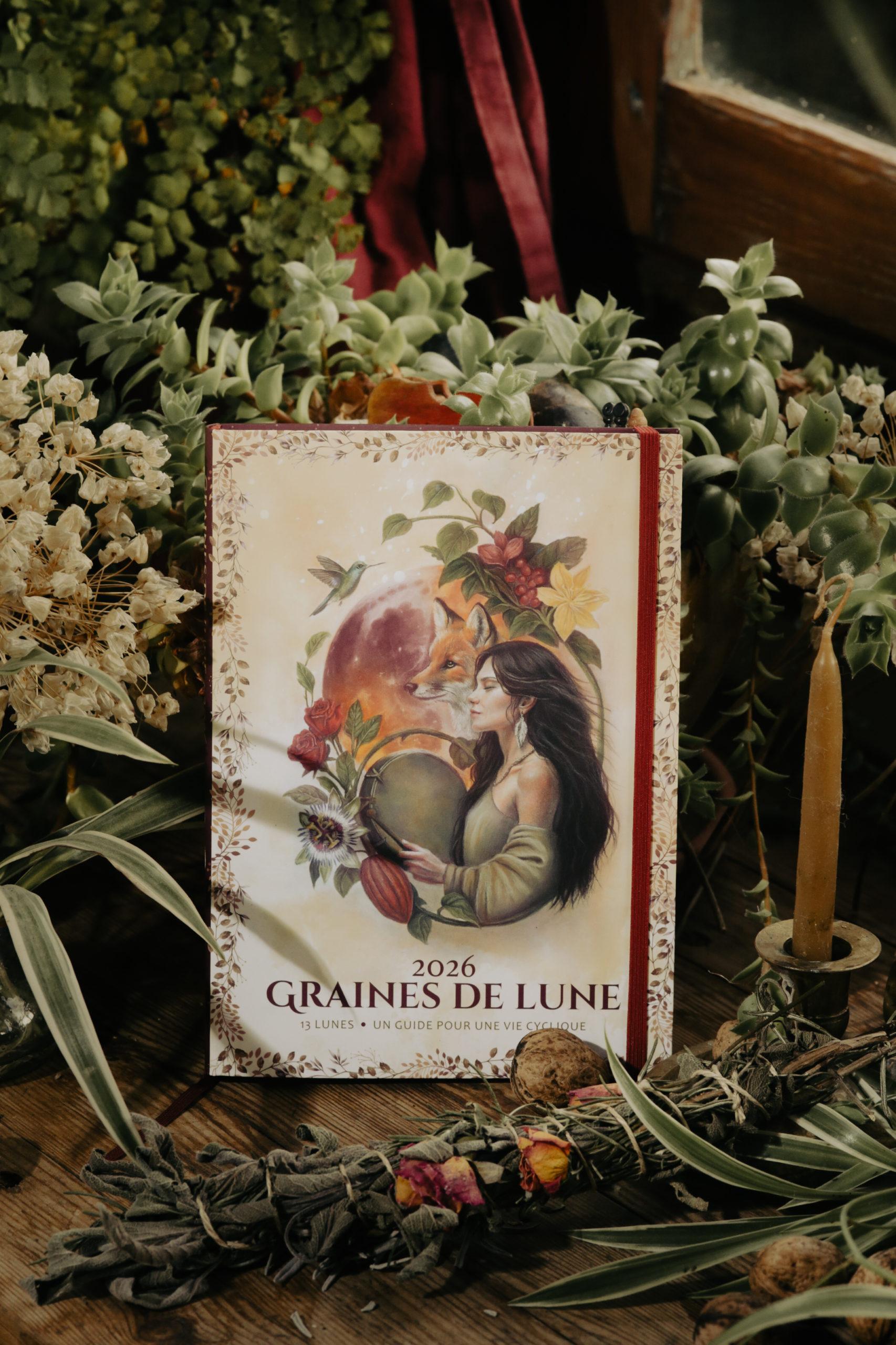 Graines de Lune se présente comme un Agenda 2026 mais vous allez vite réaliser que c’est le journal du cheminement de toute votre année, sur tous les plans, que vous venez d’adopter.